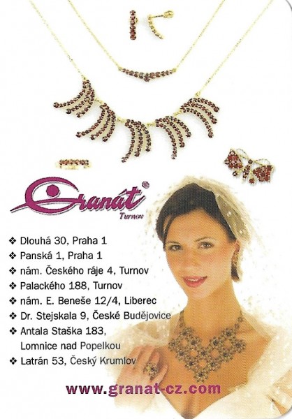 Patří mezi známé světové obchodní značky. Český granát je průhledný až průsvitný minerál krásné sytě červené barvy, náležící do skupiny pyropů. Pro toto barevné podání je český granát jako minerál oblíben na celém světě. Je to drahokam drobných rozměrů (od 0,2 do 0,8 cm).